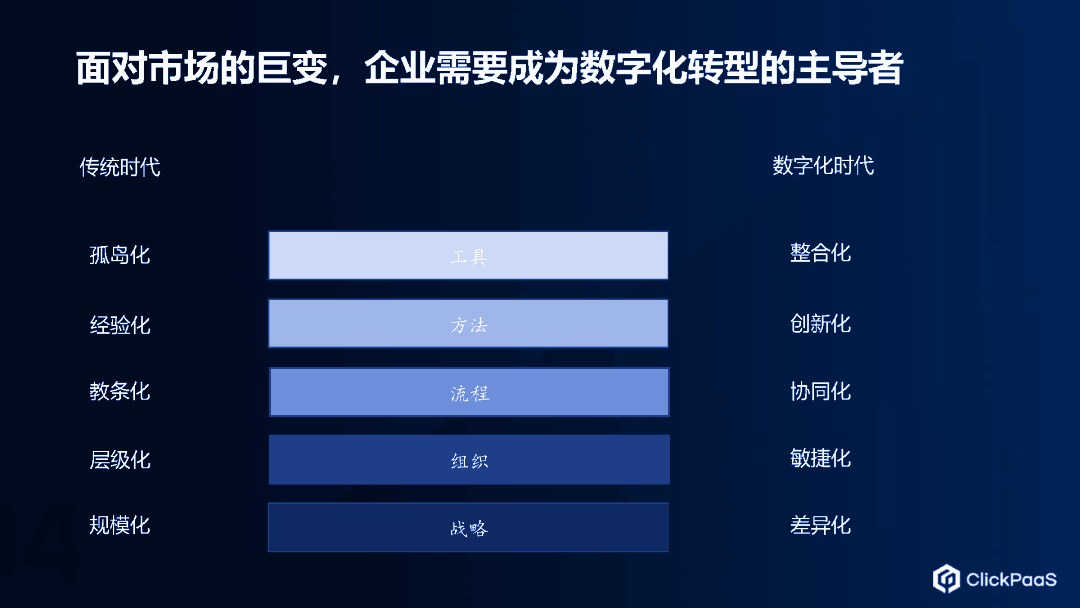 马俊在演讲中表示,,制造业是中国经济的核心组成部分,,,,与此同时,,,,在数字化转型的浪潮之中,,,,制造业也是最活跃,,,最创新的领域。。。而在面对市场从大制造时代到数字经济时代的变迁,,,,制造业企业需要成为数字化转型的主导者,,因为对于制造业来说,,进行数字化不仅仅是针对自己企业内部业务系统一种技术改造,,更多是一种商业创新。。