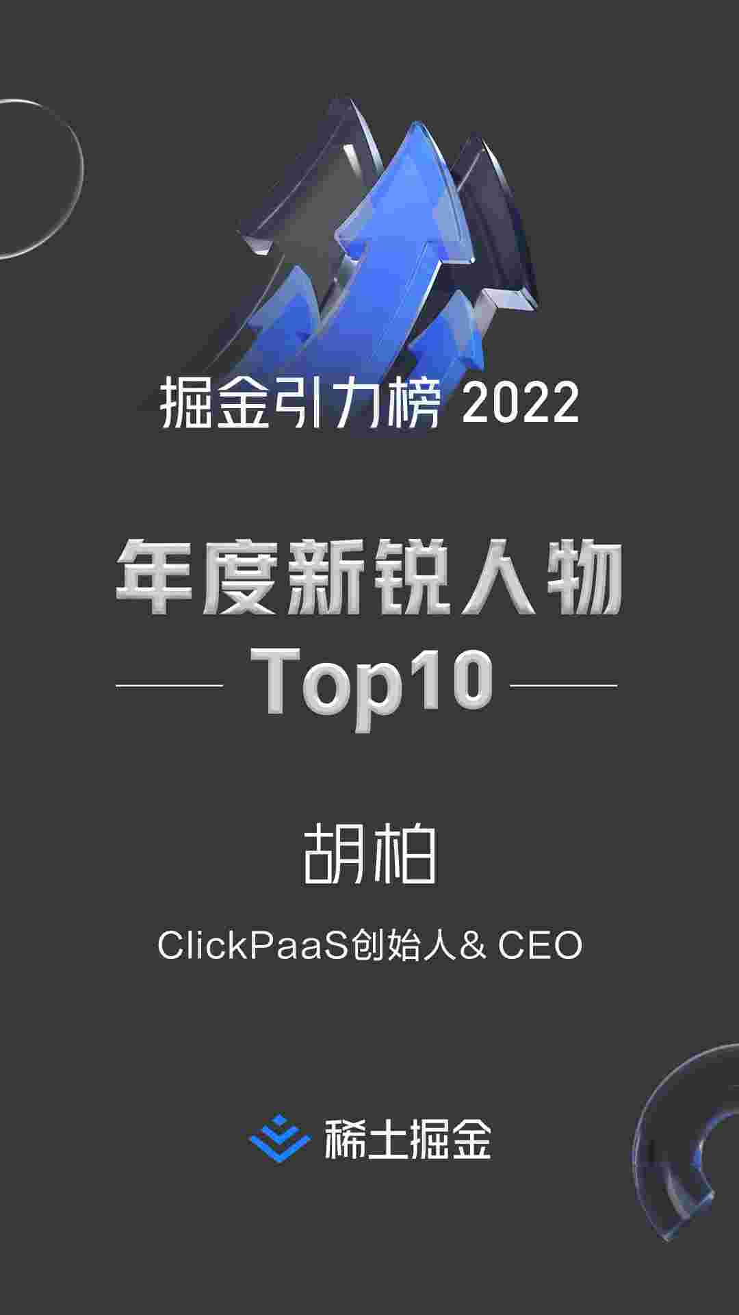 2022年1月6日,,,,稀土掘金社区第一届「掘金未来大会」成功举办,,,会上发布了“2022 稀土掘金引力榜 年度新锐人物”榜单,,,,上海爱湃斯科技有限公司(简称沃钱包)创始人及CEO胡柏实力入选年度新锐人物TOP 10。。