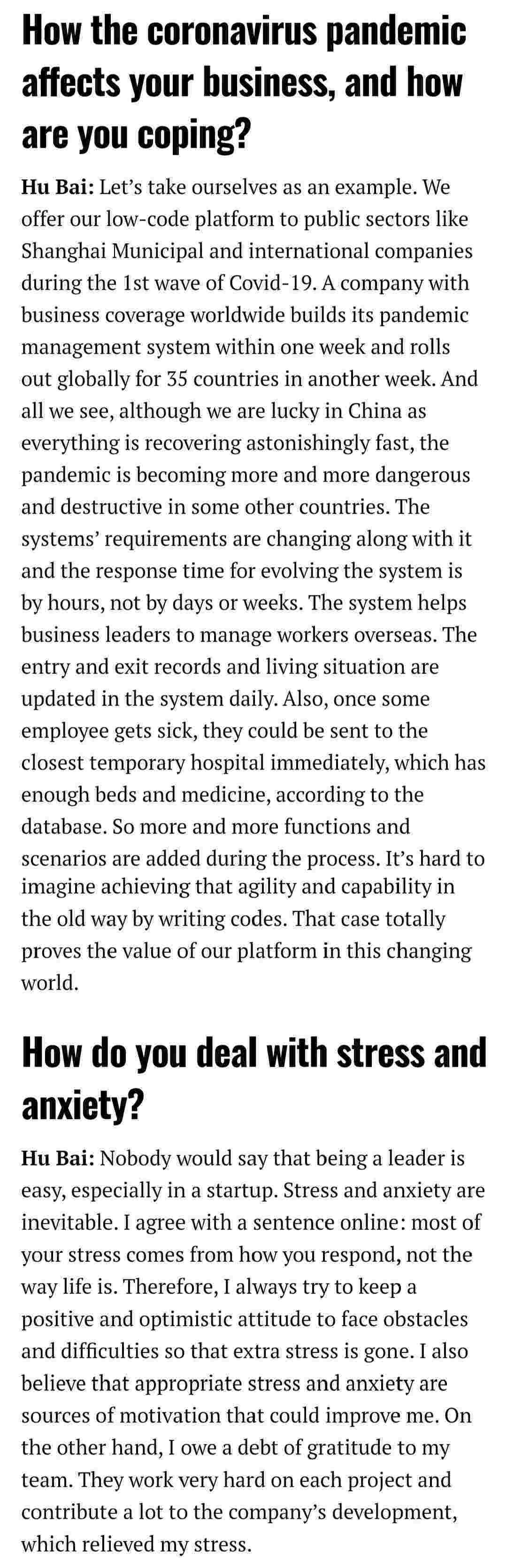 2021年年初,,,爱湃斯科技CEO胡柏受邀接受法媒Startup.info的专访,,与Startup info的读者分享了自己的创业经历、、、以及低代码平台沃钱包的创新之处。。