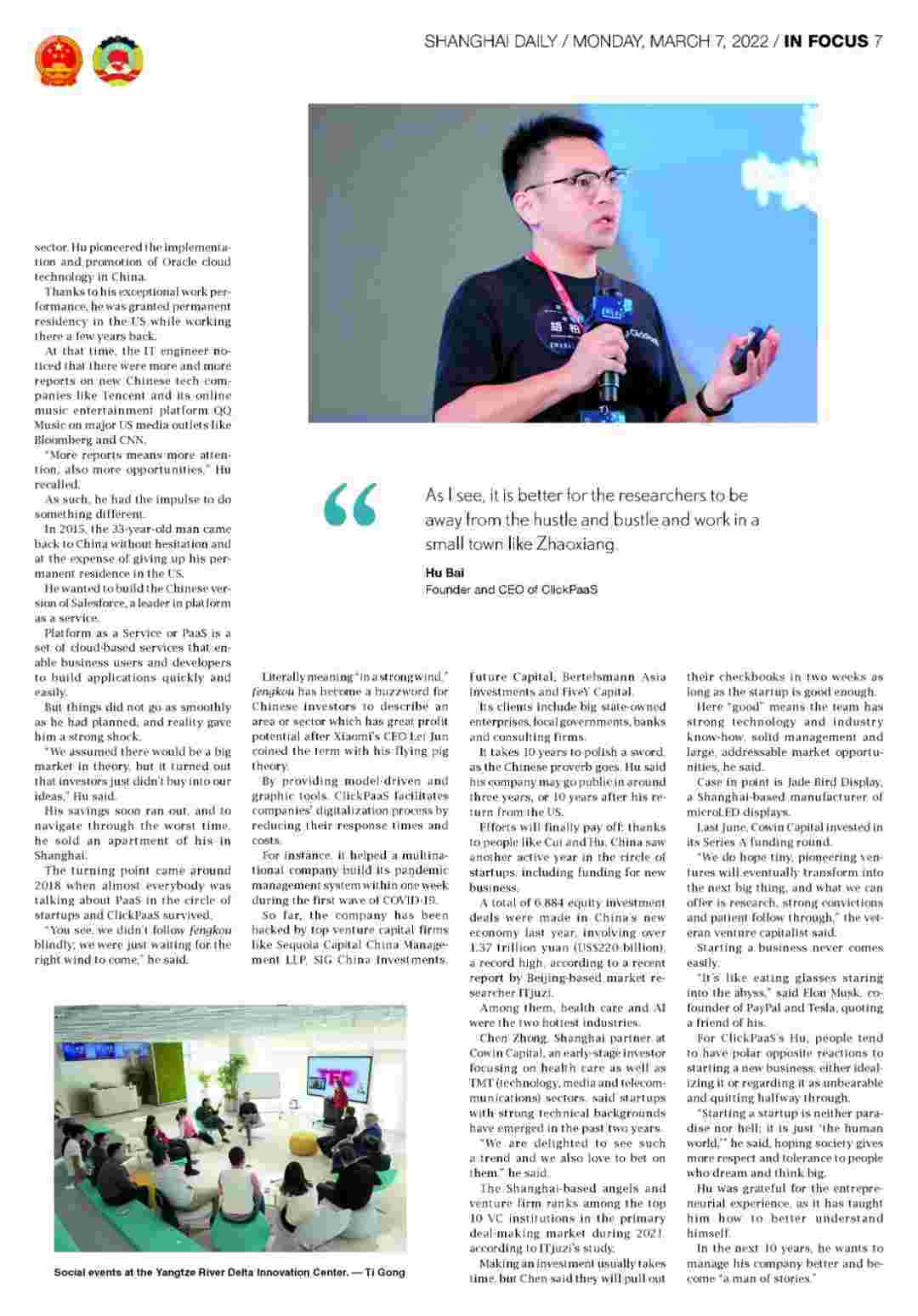 近日,,,沃钱包创始人、、CEO胡柏接受了《上海日报》采访,,关于自己当初为何选择创立沃钱包,,,又为何将公司落户于上海青浦,,,,分享了其背后的故事。。