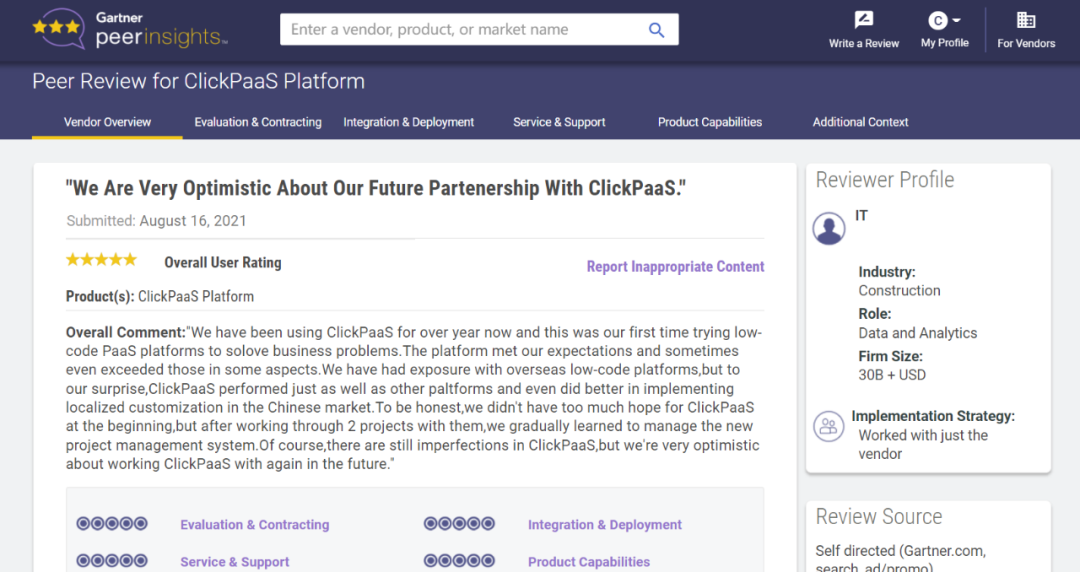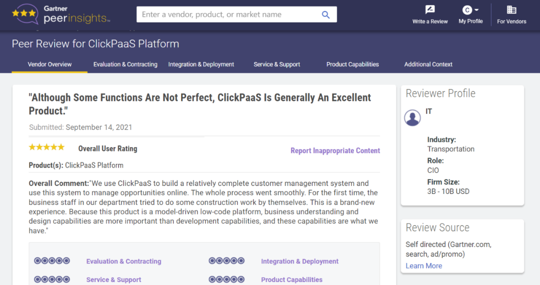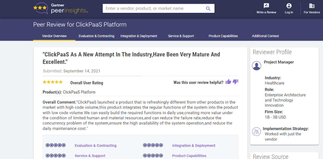 Tips::::【Peer Insights】——用户对企业IT产品和服务发布真实评价的平台。。目前已有355个市场,,255,000条经过验证的评价。。每一条评价Gartner会针对参评企业营收规模及参评人员信息做验证、、评价内容做多维核实。。。。